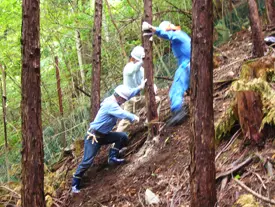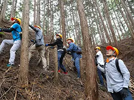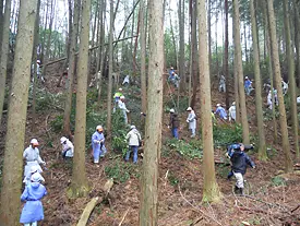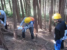 大阪府森林組合の指導により、主にヒノキの間伐に取り組んでいます。