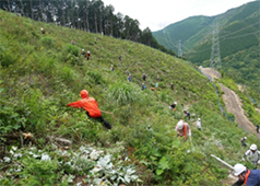 従業員ボランティアが整備活動などに参加し、地域の方々と一緒に、間伐、下刈りなどの、手間のかかる、しかし重要な森林保全活動を中心に実施しています。また、山菜採り、動物とのふれあい、昆虫採取、竹細工、きのこの植菌、巣箱つくり、等の、森に親しむ活動も行っています。