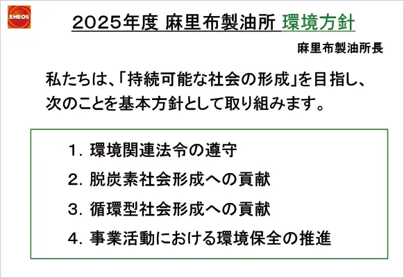 麻里布製油所の「環境方針」は、以下のとおり。