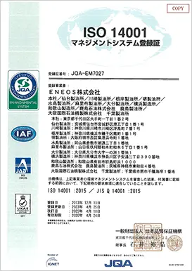 国際規格の環境マネジメントシステム「ISO14001」認証を複数製油所・製造所と一括で取得しております。