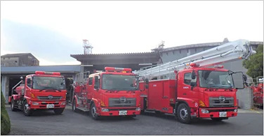 大型化学消防車、大型高所放水車、泡原液搬送車等、高度に自動化・省力化された車両を配備しています。