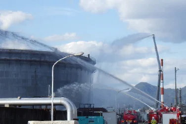 「石油コンビナート等災害防止法」等に基づき社外関連事業所と共同防災組織を形成し、相互援助協定を締結しています。