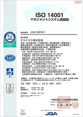 国際規格の環境マネジメントシステム「ISO14001」認証を複数製油所・製造所と一括で取得しております。