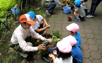 当社は、7月3日、9日および9月10日、日比谷公園で「生き物賑わい花壇教室」を開催しました。同教室は、社員がボランティア活動を行っている同公園花壇に近隣の小学生、幼稚園児を招いて、生物多様性の大切さを体感してもらうことを目的としています。子どもたちには、専門講師による蝶の説明の後、食草のミニプランターづくりを体験してもらいました。子どもたちは、自作のミニプランターに蝶が訪れる日を心待ちにしているようでした。