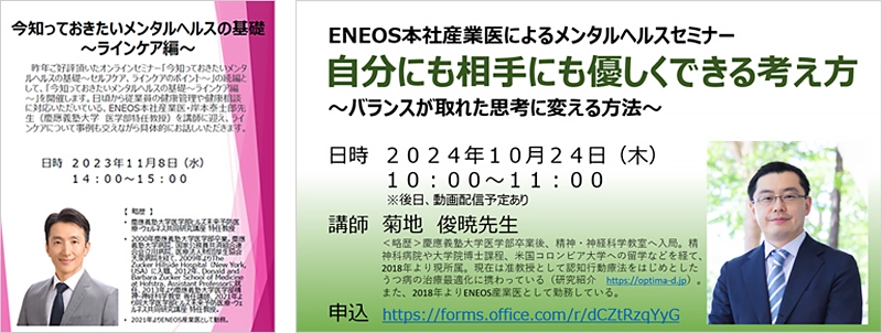 - With empirical data pointing to improved sleep habits as having a strong connection to health promotion, we have been providing sleep seminars since fiscal 2024. As a challenge for the ENEOS Group as a whole, we will continue to consider measures for improving sleep quality for employees, such as providing surveys to employees concerned about their sleep so that they can understand their own sleep patterns.