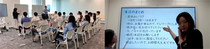 These classes were held to promote communication between employees, across company and department lines, regardless of whether or not they have hearing impairments, and create more welcoming workplaces. The classes focused on simple expressions that are often used in work and day-to-day life and which can be quickly put into actual use. Face-to-face classes are offered twice a month: once at the head office and once online, via Microsoft Teams. The classes are taught by employees with hearing impairments and everyone who takes part has fun learning sign language from their very first class.