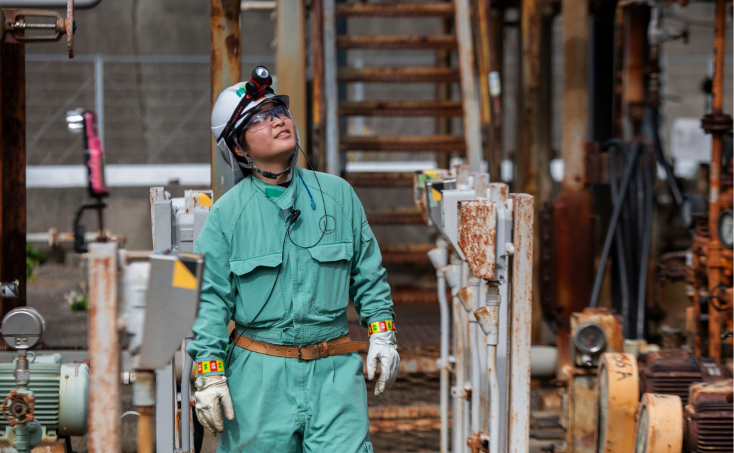 ENEOSに入社してよかったと感じるのは、頼れる仲間や先輩方に恵まれていることです。大型定修工事に初めて参加した際は、通常業務とは比べものにならない作業量と緊張感に圧倒されましたが、先輩方が丁寧に指導してくださったおかげで安心して取り組めました。無事に工事を終えたときには大きな達成感とともに、自分自身の成長も実感できました。