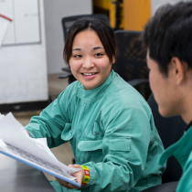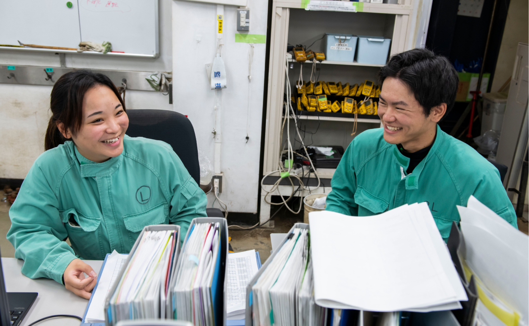 仕事を教えて。最も印象に残っているのは「定修(定期修理)」工事です。準備や安全面で気を配ることが多く、最初は戸惑いましたが、先輩方と協力して工事を無事終えることができました。大きな達成感を得ると同時に、段取りの大切さやチームワークの重要性を学び、以降の業務にも自信を持って取り組めるようになりました。