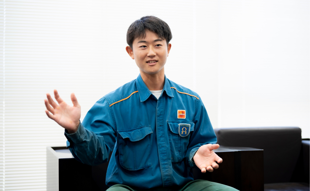 電気自動車の普及でガソリン需要が減少する一方、ENEOSは未来を見据えて水素などクリーンエネルギーを製造していることを知りました。さらに、水素製造で副生する二酸化炭素を活用し、液化炭酸ガスを生産している点にも感銘を受けました。無駄を出さない省エネの姿勢に未来を感じ、ぜひ自分もこの環境で働きたいと思い入社を決意しました。