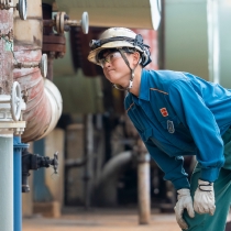 仕事を教えて。独り立ちして初めて、コンプレッサーとポンプの切り替えを担当しました。作業前のミーティングでは自ら中心となり手順書を読み上げ、緊張の中で説明を行ったことをよく覚えています。