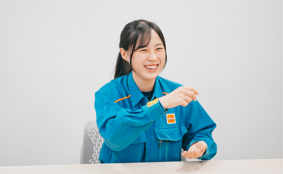 全国のガソリンスタンドや空港、テーマパークなどでENEOSのマークを目にするたびに、自分の仕事が人々の生活を支えているのだと実感します。生活に欠かせない製品を扱っているからこそ、お客様の安心や日常の笑顔につながっていると思えることが、誇りとやりがいになっています。今後は、試験員として蓄えてきた知識を活かし、既存のやり方にとらわれず改善業務にも取り組みたいと考えています。