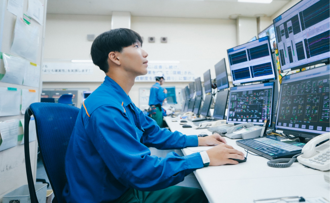プラントを動かすために欠かせない動力設備を担当しています。電気・スチーム・空気・水といったエネルギーや資源を扱い、それぞれのプラントへ安定的に供給するのが役割です。これらの供給が一つでも止まれば全プラントが操業停止となり、大きな損失につながってしまいます。そのため、日々設備を点検し、不具合を早期に発見・補修することで、安全で安定した操業を守っています。担当する設備には、ボイラー、発電機、純水装置、エアーコンプレッサー、ドライヤー、工水設備、海水設備、窒素設備などがあります。