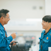 仕事を教えて。川崎製油所で、62年の歴史がある300人規模の駅伝大会の実行委員長を務めたことが印象に残っています。この規模のイベントの運営を任されるのは初めて。当時は仕事を抱え込みがちで進捗が遅れていましたが、幹事長から『もっと人に任せてもいいんだよ』と声をかけてもらいました。その助言をきっかけに周囲に仕事を振り分けたところ、運営が一気にスムーズになりました。駅伝大会は、グループの枠を超えたたくさんの方々の支えにより、無事完遂することができました。