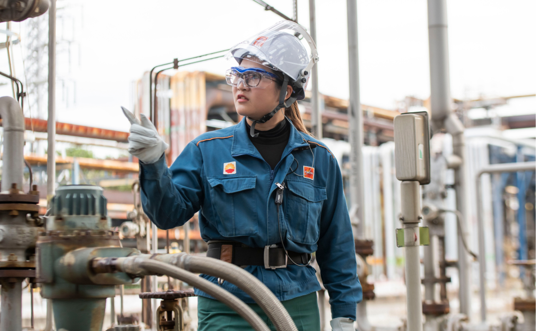 入社から5年が経ち、できる仕事や知識が増えたことに大きなやりがいを感じています。新しい知識を吸収し、現場で一人で作業をやり遂げられるようになったときや、複数の業務を効率的に終えられたときには達成感があります。今後は「ボード」と呼ばれる運転調整業務に挑戦します。これは流量や圧力、温度を制御する司令塔のような役割であり、私にとって大きな節目です。新たな仕事に挑戦しながら、さらに成長を続けていきたいと考えています。