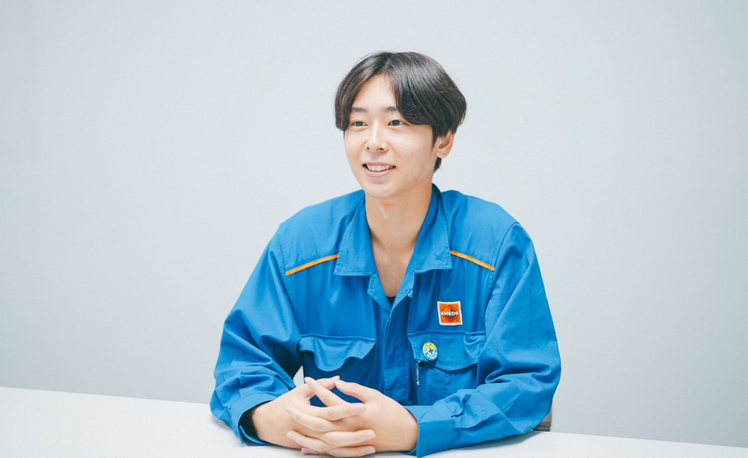 燃料油の需要が減少する中でも新たなエネルギー事業に積極的に取り組み、将来にわたって日本のエネルギー産業を支え続けようとする姿勢に共感したためです。父が自動車整備会社を経営していた影響もあり、高専で機械を専攻していたため、当初は自動車関係の道に進もうと考えていました。ただ、就職活動を進める中で、日本の産業と暮らしを支える石油業界に興味を持ち、業界トップのENEOSに強く惹かれるようになりました。