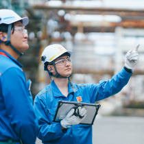 所属する設備保全3グループの役割は、川崎製油所川崎地区の製造装置、オフサイト設備、タンク設備のメンテナンスを実施することです。私は、ボイラー・ユーティリティ装置の工事計画から仕様書発行・発注/検収、工事の進捗管理、設備信頼性向上のための検討業務等をメインに担当しています。工事を実施するにあたり社内の製造グループや検査グループなどの関係部署や施工会社と綿密な連携を取り、安全第一を徹底し誰も怪我させないこと、求められる工事品質を保つことを心掛けています。