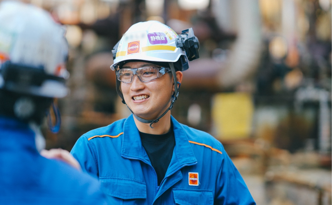 様々な方々と深く関わることができることです。製油所の保全の仕事は、協力会社の方々の協力なくしては成り立ちません。業務をしていく中で、「この工事の担当が君で良かったよ」と言われたことがあり、非常に嬉しい気持ちになると共にモチベーションが上がったこともよく覚えています。入社して良かったと実感しました。また、ENEOSは大企業ということで知名度もかなり高いため、家族が安心してくれているのも事実です。このような部分もENEOSに入社して良かったと感じる一つです。