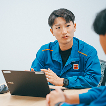 仕事を教えて。入社2年目の頃、運転中の排熱ボイラーにて不具合が発生し補修を行ったことが特に印象に残っています。急ぎの工事であったため、工事計画や見積りの確認などに追われて忙しい時期でしたが、今では良い経験だったと思っています。普段担当していただいている協力会社では対応が難しい内容だったため、初めて関わる別の協力会社と共に仕事を進めることになりました。その際、コミュニケーションが非常に大切だということを痛感。それからは関係者とのコミュニケーションを密に、円滑にとるように意識しています。