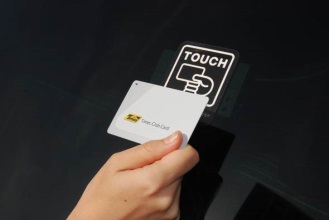 ②リアガラス等のカード読み取り部分に会員カードをかざし、車両のドアロックを解除